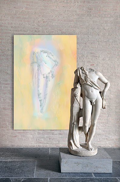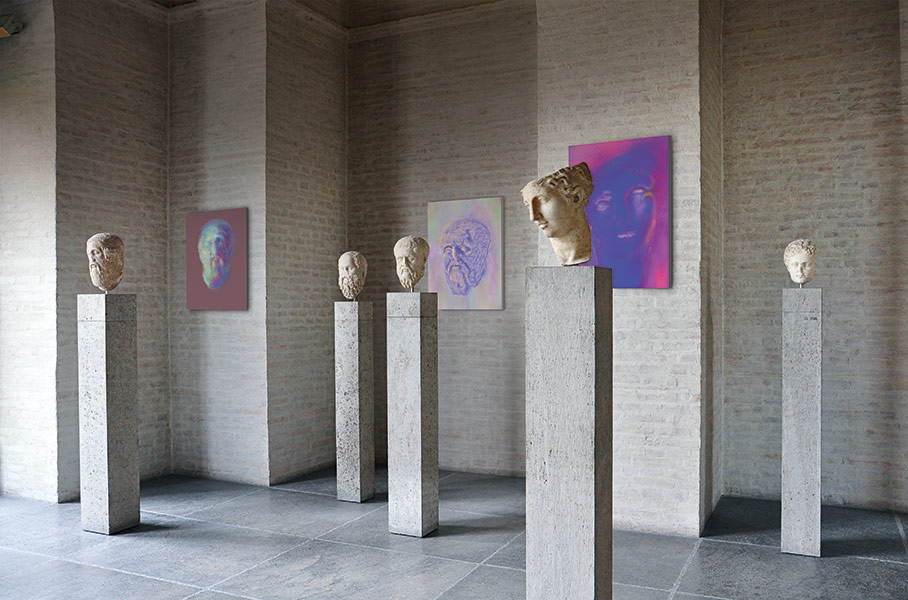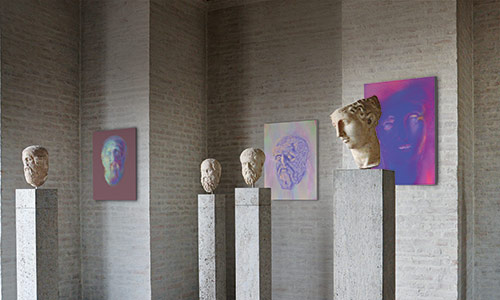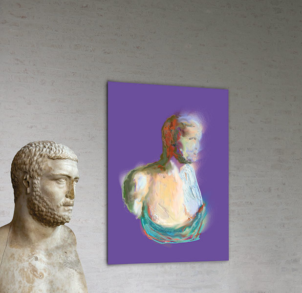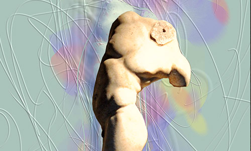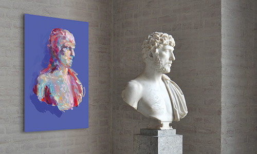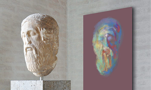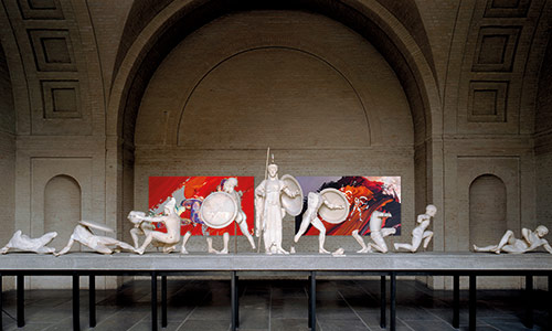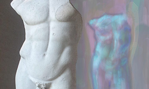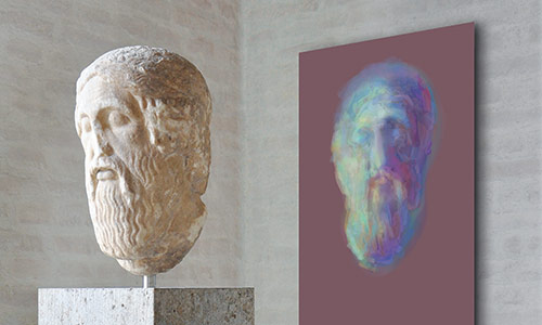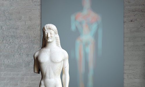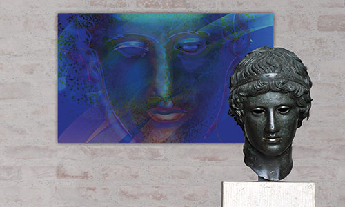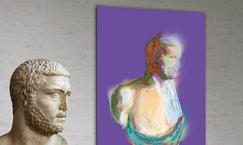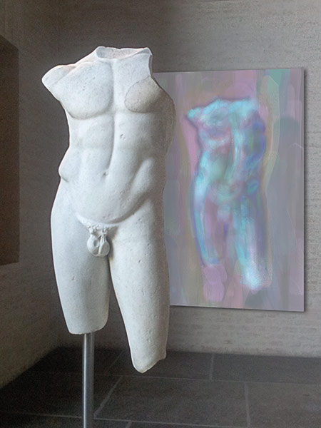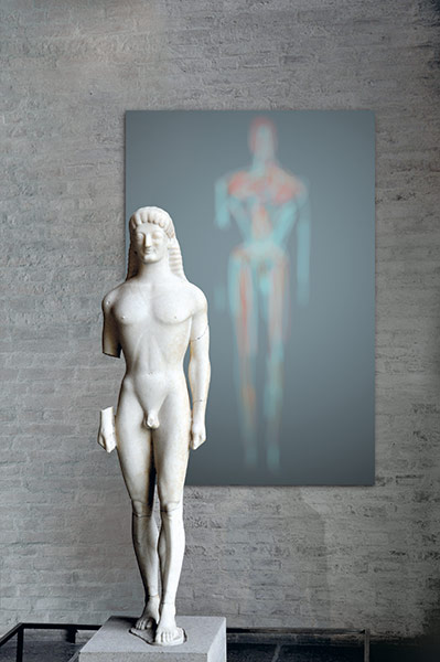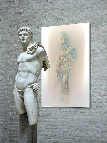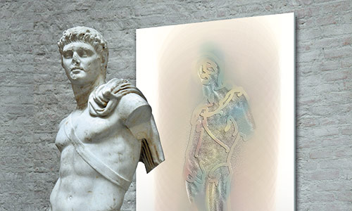 Werner Kroeners farbige Spiegelungen so berühmter Plastiken wie der des Apoll von Tenea oder der Aphrodite von Knidos, aber auch anmutiger namenloser Jünglinge stiernackiger Römerköpfe oder frivoler Satyrn laden dazu ein, durch einen Wechsel der Perspektiven dem antiken Denken näherzukommen: dem antiken Lachen etwa, dem vollendet schönen Körper, der Unausweichlichkeit des Schicksals. Dabei werden zugleich universale Menschheitsthemen wie Liebe, Verführung, Krieg, Tod oder Selbstüberhebung berührt.