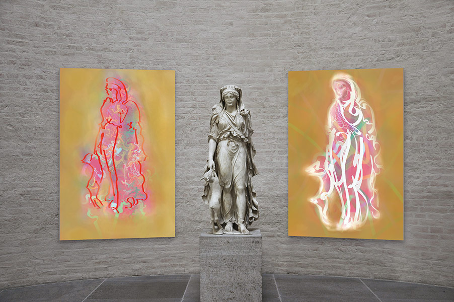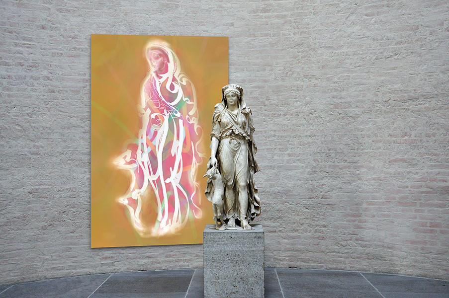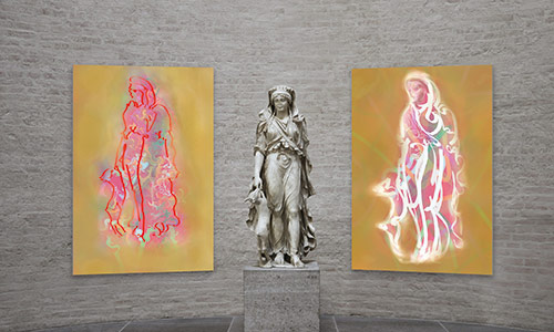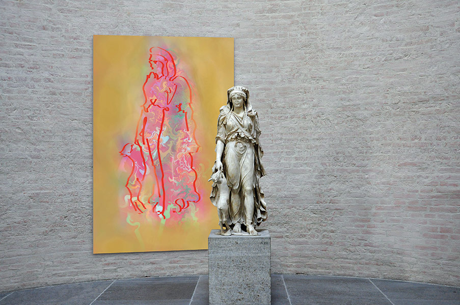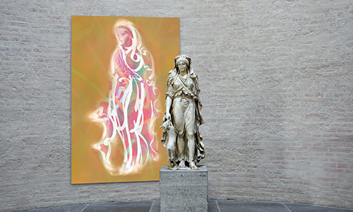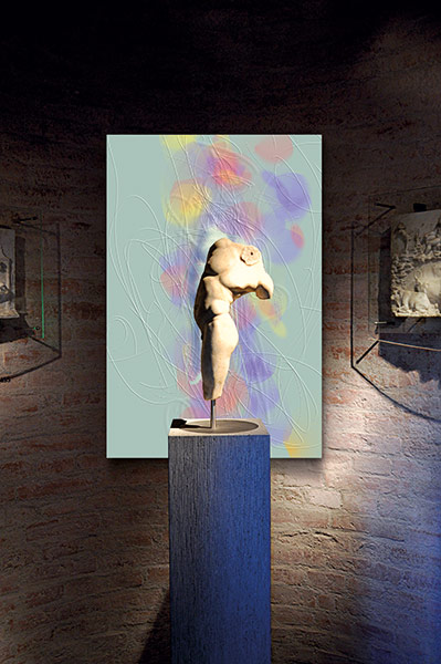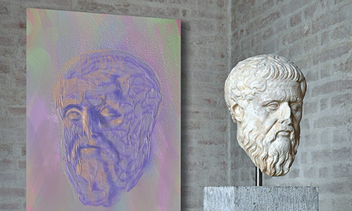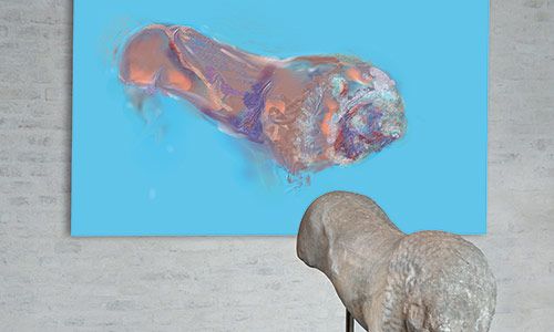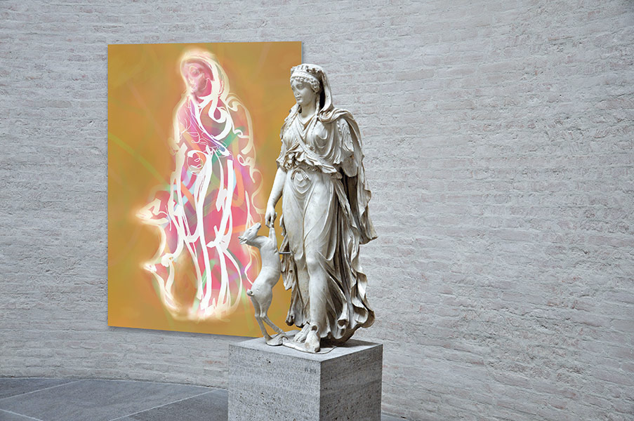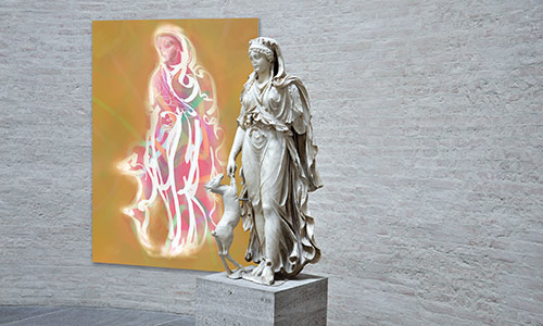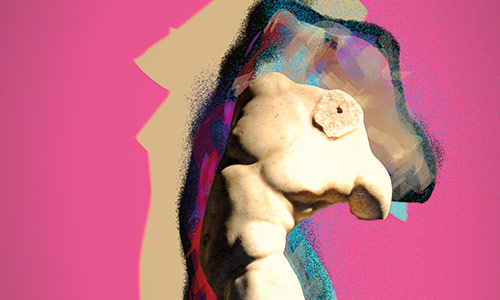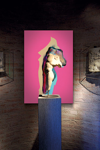 Werner Kroeners farbige Spiegelungen so berühmter Plastiken wie der des Apoll von Tenea oder der Aphrodite von Knidos, aber auch anmutiger namenloser Jünglinge stiernackiger Römerköpfe oder frivoler Satyrn laden dazu ein, durch einen Wechsel der Perspektiven dem antiken Denken näherzukommen: dem antiken Lachen etwa, dem vollendet schönen Körper, der Unausweichlichkeit des Schicksals. Dabei werden zugleich universale Menschheitsthemen wie Liebe, Verführung, Krieg, Tod oder Selbstüberhebung berührt.